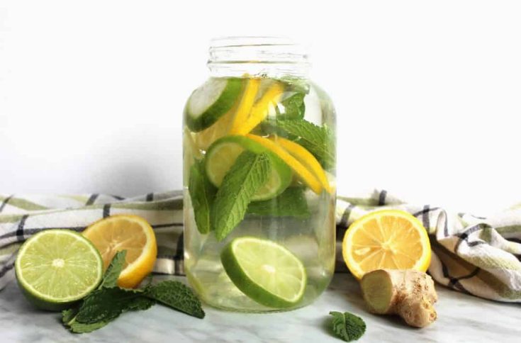 Water infused with ginger, lemon, and mint is a powerful detox drink that boosts digestion and metabolism. Ginger helps reduce bloating, lemon helps eliminate toxins from the body, and mint improves gut health.