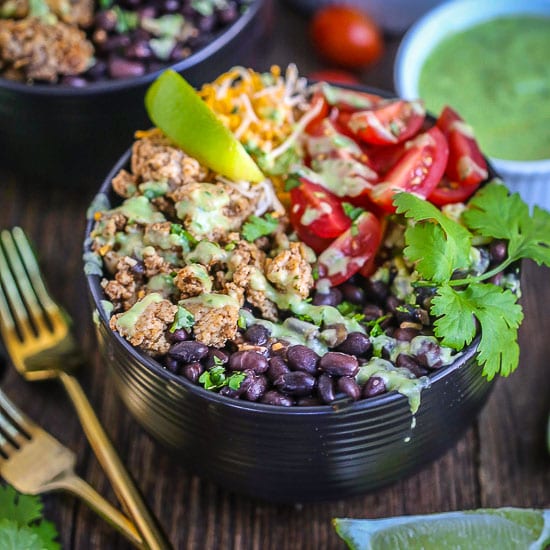 - Top rice or grain bowls with spiced ground chicken, avocado, and salsa for a healthy chicken burrito bowl.