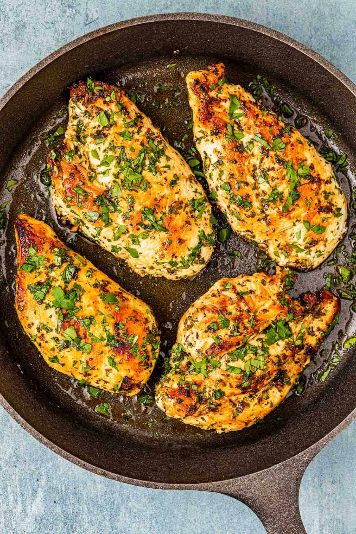 Basil, thyme, rosemary, and parsley — a classic low calorie seasoning perfect for baked chicken.